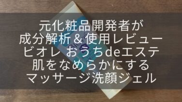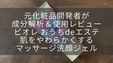 スキンケア 元化粧品開発者が成分解析とレビュー!ビオレ おうちdeエステ 肌をやわらかくするマッサージ洗顔ジェル ビオレ おうちdeエステ 肌をやわらかくするマッサージ洗顔ジェルを元化粧品開発者の視点で成分解析とレビューをしました。花王の洗顔ジェルの中でも肌に優しい設計で、肌への刺激リスクを抑えながら、角栓ケアをしっかりできるアイテムになっています。 スキンケア