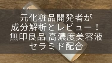 スキンケア 元化粧品開発者が成分解析とレビュー!無印良品 高濃度美容液 セラミド配合 無印良品 高濃度美容液 セラミド配合を元化粧品開発者の視点でレビューしました。とにかくセラミドに特化した美容液で、セラミドのリッチな使用感がしっかりと感じられる1本になっていました。 スキンケア